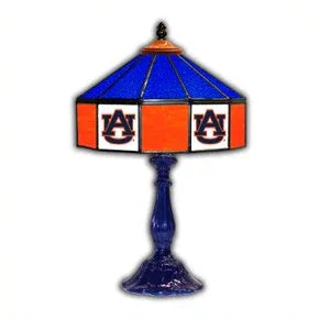 This NCAA Officially Licensed Auburn Tigers Glass Table Lamp will dress up any room in the house and shows your support of your favorite team. Comes with everything you need - just add one 60 watt light bulb (not included). Artfully handcrafted 14†old world Tiffany style stained glass table Lamp. Fully wired with 1 UL. Approved high quality light socket. Heavy duty solid cast metal base. 6’ of cord with polarized plug. Handmade in the U.S.A. Lamp measures 14†wide X 22†high. Allow 10 days to ship. Ships small parcel. Weighs 13 pounds.