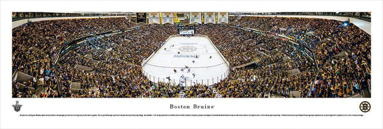 This panorama, taken by James Blakeway, captures the Boston Bruins in their first game of the series and an exciting victory over their co-conference opponent. This win got the Bruins off to a good start in their first round of the Stanley Cup® Playoffs. Since November 1, 1924, the day the franchise was established, the Boston Bruins have been at the epicenter of hockey in New England and have been the beloved hometown hockey team with numerous division and conference crowns, as well as Stanley Cup® Championships. The Boston Bruins were one of the National Hockey League's® first expansion teams, one of the Original Six™ and predate the other 24 teams currently in the league.Panoramics are 13.5"x40". When framed, about 2-3 inches are added to each side. Allow 1-3 business days handling time.