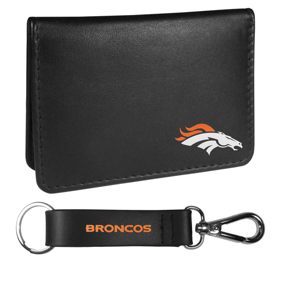 Upgrade your wallet game with our ultra-slim leather wallet, designed for sports fans and perfect for weekends. This sleek wallet features two convenient credit card slots on the front, an additional slot on the back, and a spacious inner pocket for cash. Show your team pride with the expertly silk screened Denver Broncos logo prominently displayed on the front corner. Plus, it includes a stylish black strap keychain with a clip, making it easy to attach to belts, backpacks, or purses. Say goodbye to bulky wallets and hello to streamlined functionality.