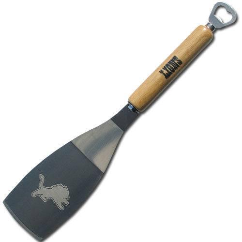 Upgrade your grilling game with this premium Detroit Lions 2-in-1 Stainless Steel Spatula, an essential addition to any sports fan's kitchen. Officially licensed by the NFL, this high-quality spatula features the iconic Detroit Lions logo laser etched into the durable stainless steel. Not only does it serve as a monster spatula with a generous flipping surface of 3.75 x 5.75 inches, but it also includes a convenient bottle opener on the handle, making it perfect for game day barbecues.