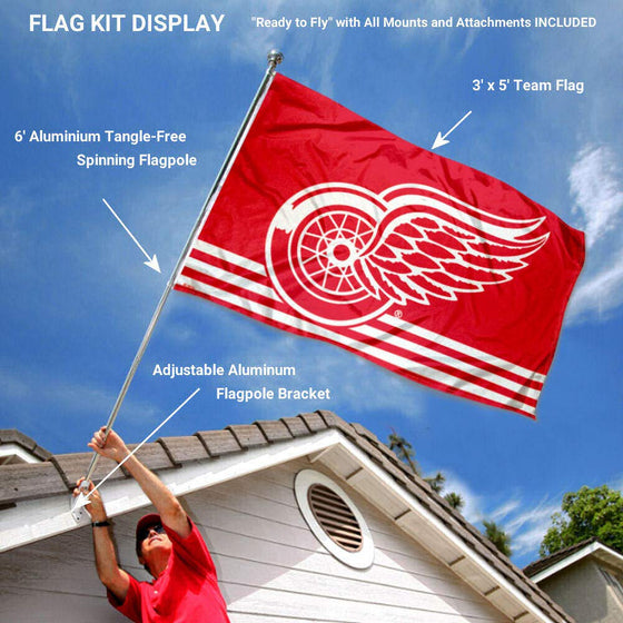 Details: This Flag, Banner or Pennant includes the 3x5 foot flag as shown along with our recommended accessories including a 6' spinning flagpole and adjustable aluminum flag bracket. The flag is 3x5 feet in size, made of single-ply polyester, has screen printed logos (opposite side is reverse image), includes quadruple stitched flyends for extra durability, and two metal grommets for attaching to the included flagpole or any of your flagpole systems. The included 6' pole is our spinning aluminum flagpole so the flag will fly tangle free. Also included is our adjustable aluminum flag bracket which adjusts every 15 degrees from 0-180 degrees so you can fly this flag at any angle. This is a great gift item and includes all hardware so it's easy for you to install and proudly fly your team allegiance. This flag is League Officially Licensed by Team