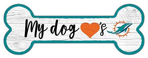 Details: Miami DolphinsDog bone shaped sign reading "My dog loves". Decorative team sign. Great for any room. Show team pride. American made sign.