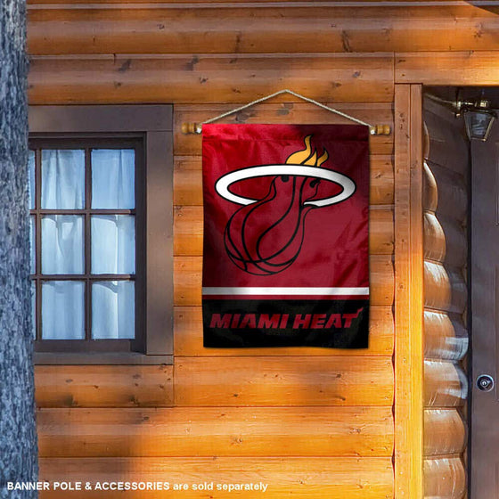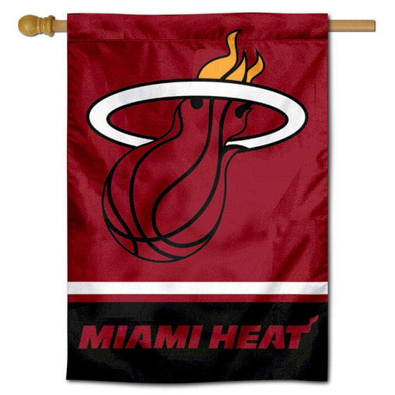 Details: Our House Flag for the Miami Heat measures 28" x 40" in size, has a Double Stitched Perimeter, is made of 2-Ply Polyester with sewn-in liner, has Double Sided Screen Printed logos, and has a 3" top pole sleeve to slide over your flagpole or banner pole. This banner flag is Viewable and Readable Correctly on Both Sides and is League Genuine Merchandise which ensures a quality item, hologram packaging, authentic logos, and genuine team colors. (Flagpole, Brackets, and Accessories sold separately)