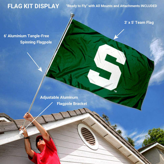 Details: This Flag, Banner or Pennant includes the 3x5 foot flag as shown along with our recommended accessories including a 6' spinning flagpole and adjustable aluminum flag bracket. The flag is 3x5 feet in size, made of single-ply polyester, has Officially Licensed screen printed logos (opposite side is reverse image), includes quadruple stitched flyends for extra durability, and two metal grommets for attaching to the included flag pole or any of your flagpole systems. The included 6' pole is our spinning tangle free aluminum flagpole so the flag will fly tangle free. Also included is our adjustable aluminum flag bracket which adjusts every 15 degrees from 0-180 degrees so you can fly this flag at any angle. This is a great gift item and includes all hardware so it's easy for you to install and proudly fly your team allegiance.