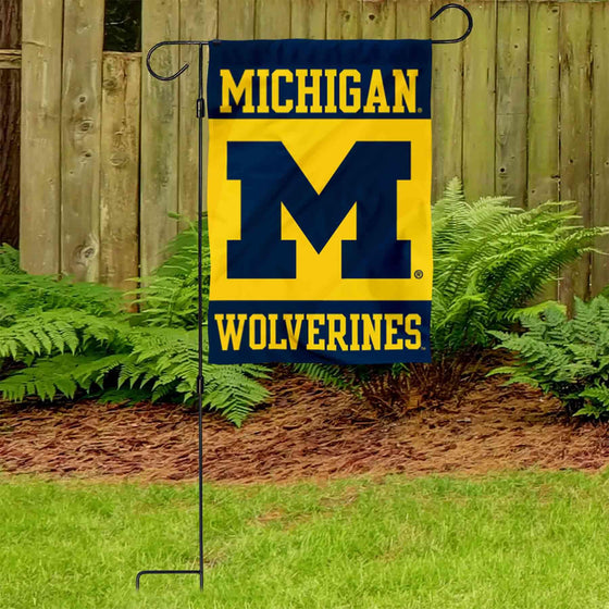 Details: Michigan Wolverines Yard Flag and Flag Stand Holder Flagpole Set is an ideal set for your yard, garden, walkway, mailbox, or home entrance. This bundle includes your selected 13" x 18" Double Sided College Garden Flag along with a Sturdy Steel Powder Coated Garden Flag Stand with an included Non-Slide Flag Stopper Clip. The garden flag measures 13x18 inches, is made of 2-Ply Polyester with sewn-in liner, is Double Sided Screen Printed, has a top pole sleeve for inserting the included Garden Flag Holder. The Garden Flag Stand measures an assembled height of 36.5" and has a flag crossbar width of a large 17.5". Also, the stand is made of steel, is powder coated black, and the ground stake is made with welds for extra durability. A unique gift, our set is ready to fly and no tools are needed for assembly. The Flag is Officially Licensed and College and University Approved.
