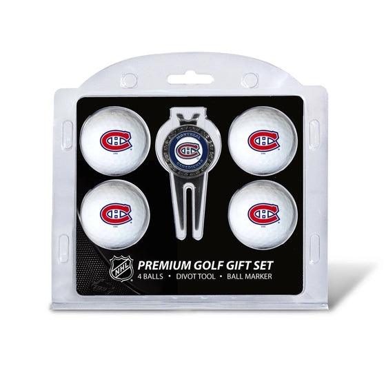 Shop the Montreal Canadiens 4 Ball Tin Gift Set featuring 4 regulation golf balls, a team logo divot tool, and a magnetic marker. Sleek tin packaging included. Fast shipping in 3-5 business days!