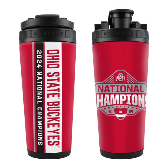 Celebrate the Ohio State Buckeyes' 2024-2025 National Championship victory with the official 26oz 4D Stainless Steel Ice Shaker. This premium shaker bottle features vibrant 4D graphics commemorating the Buckeyes' championship win, making it a must-have for any fan.