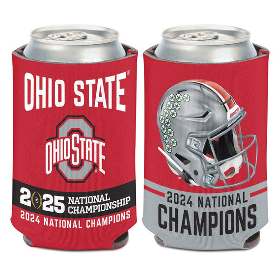 Celebrate Ohio State's victory in style with the 2024-2025 National Football Champions Ohio State Buckeyes CFP Can Cooler. Designed for true Buckeyes fans, this 12 oz. can cooler keeps your beverages cold while showcasing your team pride. Featuring vibrant, high-quality graphics of the official 2024-2025 National Championship logo, this cooler is a must-have accessory for tailgates, game days, or any Ohio State celebration.