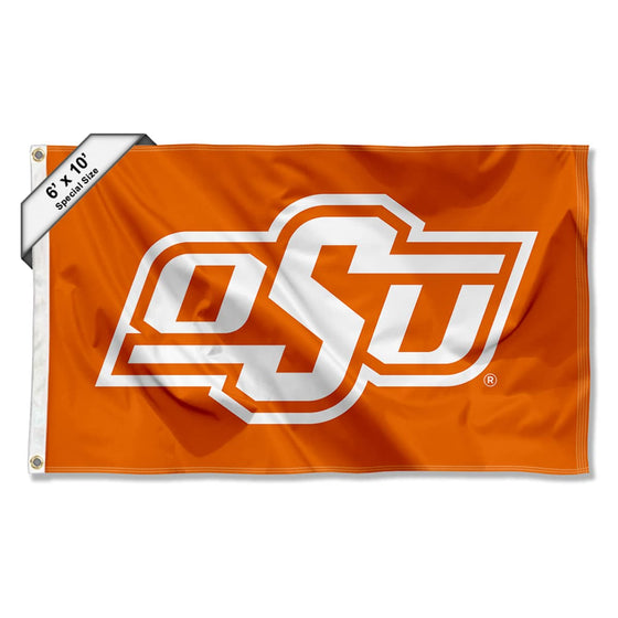 Details: This Large Flag, Banner or Pennant measures 6 ft x 10 ft in size, has Quadruple Stitched fly ends, is made of durable woven Polyester, and has two Metal Grommets for attaching to your flagpole or hanging from the rafters or on any wall. The Screen Printed OSU Cowboys logos are Officially Licensed and College, University, or Team Approved and are Viewable on Both Sides (Opposite Side is a Reverse Image). Please Note, these are very large 6x10 foot flags (typical flag is 3x5 feet in size) so please measure for your use before ordering.