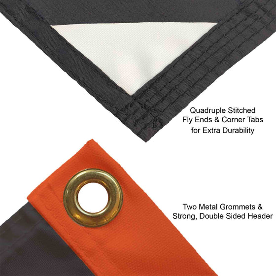 Details: This Premium Header Printed banner flag measures 3 ft x 5 ft in size, has Quadruple Stitched fly ends, additional sewn corner tabs for durability, is made of durable Polyester, and has two Metal Grommets for attaching to your flagpole. In addition, this quality flag features a 2-ply header which is printed with team nicknames and wordmarks on both sides. The Screen Printed coillege or university logos are Officially Licensed and Approved and are Viewable from Both Sides (Opposite Side is a Reverse Image).