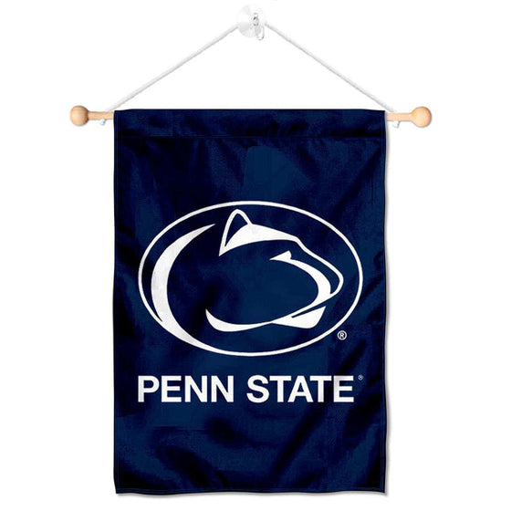 Details: This Flag, Banner or Pennant includes a 13x18 inch mini banner flag, small wood banner pole which is 17 inches in length and 3/8 inch in diameter, cut to size display rope, and 1.75 inch sturdy suction cup. The small banner flag is made of 2-ply 100% polyester with sewn-in liner and screen printed logos which are viewable and readable correctly on both sides. This college banner is ready to hang and offers easy setup by connecting each 1/2 of the removable banner pole within the sleeve of the banner. This item can be used indoors or outdoors and is ideal for displaying at your house entrance, windows, mirrors, refrigerator, or any wall of your home or office. Each of these banner flags are Officially Licensed by the selected university and approved. The Flag is Officially Licensed and Team, College, or University Approved Approved.