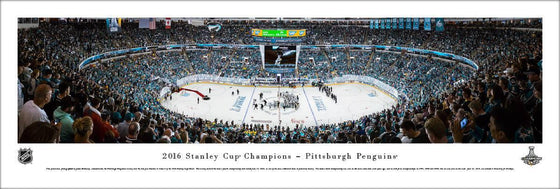 This panorama, photographed by James Blakeway, commemorates the Pittsburgh Penguins® victory over the San Jose Sharks® in Game 6 of the 2016 Stanley Cup® Final. The victory secured the team’s fourth championship and etched June 12, 2016, as one of the most celebrated dates in franchise history. The team’s third championship was won on the exact same date seven years ago, and as with prior championships in 1991, 1992 and 2009, this too was won on the road. June 12, 2016, was indeed A Great Day for Hockey®.Panoramics are 13.5"x40". When framed, about 2-3 inches are added to each side. Allow 1-3 business days handling time.