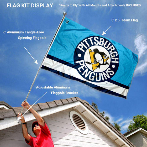 Details: This Flag, Banner or Pennant includes the 3x5 foot flag as shown along with our recommended accessories including a 6' spinning flagpole and adjustable aluminum flag bracket. The flag is 3x5 feet in size, made of single-ply polyester, has screen printed logos (opposite side is reverse image), includes quadruple stitched flyends for extra durability, and two metal grommets for attaching to the included flagpole or any of your flagpole systems. The included 6' pole is our spinning aluminum flagpole so the flag will fly tangle free. Also included is our adjustable aluminum flag bracket which adjusts every 15 degrees from 0-180 degrees so you can fly this flag at any angle. This is a great gift item and includes all hardware so it's easy for you to install and proudly fly your team allegiance. This flag is League Officially Licensed by Team