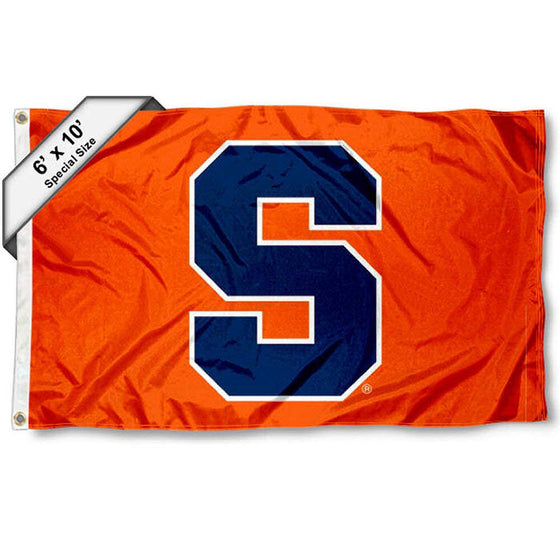 Details: This Large Flag, Banner or Pennant measures 6 ft x 10 ft in size, has Quadruple Stitched fly ends, is made of durable woven Polyester, and has two Metal Grommets for attaching to your flagpole or hanging from the rafters. The Screen Printed Syracuse logos are Officially Licensed and College, University, or Team Approved and are Viewable on Both Sides (Opposite Side is a Reverse Image). Please Note, these are very large 6x10 foot flags (typical flag is 3x5 feet in size) so please measure before ordering.