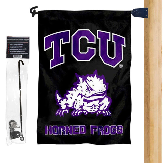 TCU Horned Frogs Black Garden Yard Flag and Mailbox Post Pole Mount Holder Set