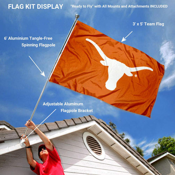 Details: This Flag, Banner or Pennant includes the 3x5 foot flag as shown along with our recommended accessories including a 6' spinning flagpole and adjustable aluminum flag bracket. The flag is 3x5 feet in size, made of single-ply polyester, has Officially Licensed screen printed logos (opposite side is reverse image), includes quadruple stitched flyends for extra durability, and two metal grommets for attaching to the included flag pole or any of your flagpole systems. The included 6' pole is our spinning aluminum flagpole so the flag will fly tangle free. Also included is our adjustable aluminum flag bracket which adjusts every 15 degrees from 0-180 degrees so you can fly this flag at any angle. This is a great gift item and includes all hardware so it's easy for you to install and proudly fly your team allegiance.