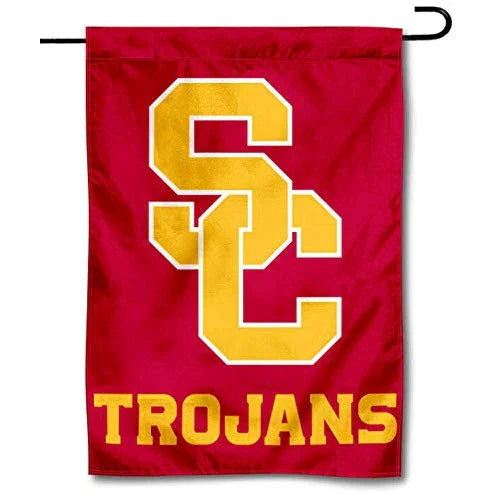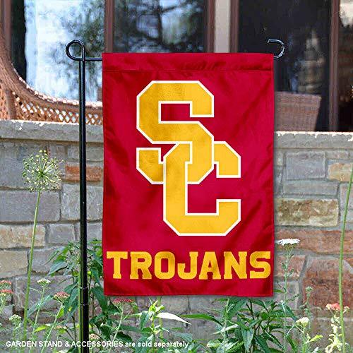 Details: Perfect for your garden or home entrance is our Flag, Banner or Pennant. This double sided League Garden Flag measures a large 13" x 18", has a Double Stitched border, a 1 inch top sleeve, and is made of 2 ply Polyester so the logos are Viewable and Readable Correctly on Both Sides. The Screen Printed Southern Cal USC Trojans logos are Officially Licensed and Approved by the League and Team, College, or University Approved. Adjustable Height Garden Flag Stand sold separately.