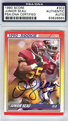 Junior Seau Autographed 1990 Score Rookie Card #302 USC Trojans PSA/DNA #83828665
