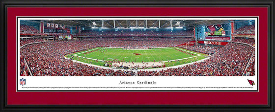 This panorama of the Arizona Cardinals playing at University of Phoenix Stadium was photographed by Christopher Gjevre. After playing 18 years at Sun Devil Stadium, the Arizona Cardinals finally had a stadium to call their own when University of Phoenix Stadium opened with much fanfare in 2006. With its exterior skin representing the indigenous barrel cactus, it was the first stadium built in North America with both a retractable roof and a retractable field. The field weighs 18.9 million pounds and is moved in only for game days. The Cardinals are the oldest existing professional football club in the United States and are a charter member of the National Football League.