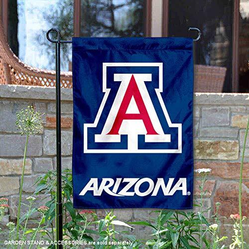 Details: Perfect for your garden or home entrance is our University Arizona Garden Flag and Yard Banner. This double sided college garden flag measures a large 13x18 inches, has a double-stitched border, a 1 inch top sleeve, and is made of 2 ply polyester with liner so the logos are viewable and readable correctly on both sides. The screen printed Wildcats logos are Officially Licensed and Approved by the University Arizona. (Flag Only, Accessories Sold Separately)