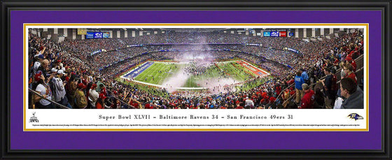 This panorama, taken by Christopher Gjevre, showcases the excitement of the evening, as the AFC Champion Baltimore Ravens and the NFC Champion San Francisco 49ers competed in the American football game of the year – Super Bowl XLVII. With a final score of Baltimore 34, San Francisco 31, the Ravens captured the franchise's second Super Bowl Championship. Experiencing great success since winning their first World Championship in 2000, the Ravens have made nine playoff appearances and also earned four AFC North division titles. Super Bowl XLVII marked the first time in NFL history that two brothers, Baltimore head coach John Harbaugh and San Francisco head coach Jim Harbaugh, coached against one another in a Super Bowl.