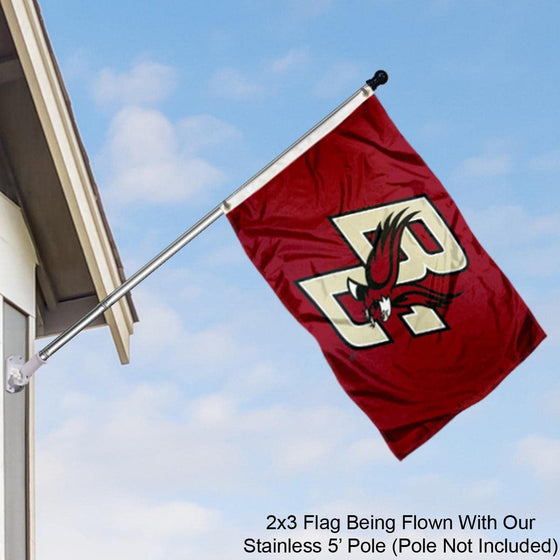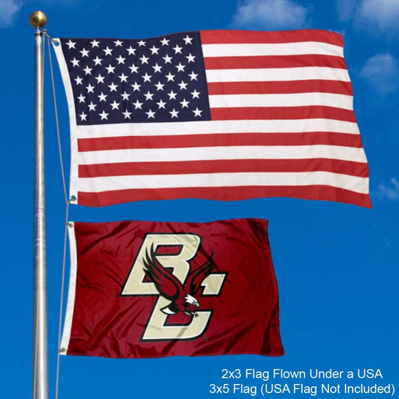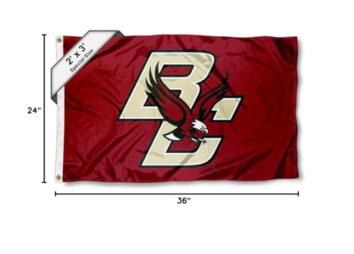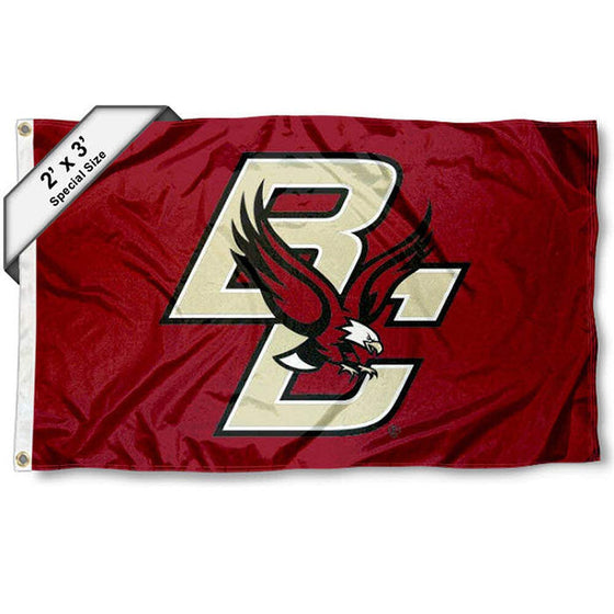 Details: This small Flag, Banner or Pennant measures 2' x 3' in size, has Quadruple Stitched fly ends, is made of single-ply Polyester, and has two Metal Grommets for attaching to your flagpole. The Screen Printed BC Eagles logos are Officially Licensed and College, University, or Team Approved and are Viewable on Both Sides (Opposite Side is a Reverse Image).