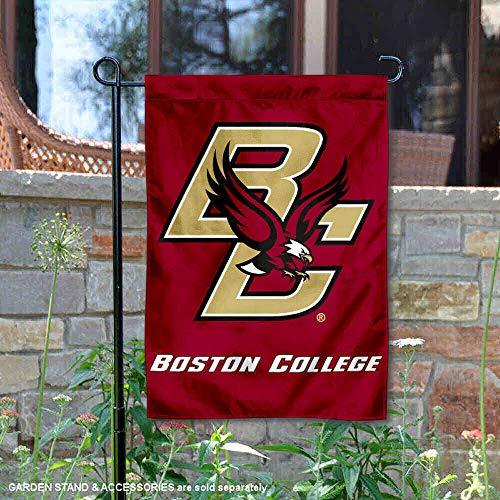Details: Perfect for your garden or home entrance is our Boston College Garden Flag and Yard Banner. This double sided college garden flag measures a large 13x18 inches, has a double-stitched border, a 1 inch top sleeve, and is made of 2 ply polyester with liner so the logos are viewable and readable correctly on both sides. The screen printed Eagles logos are Officially Licensed and Approved by the Boston College. (Flag Only, Accessories Sold Separately)