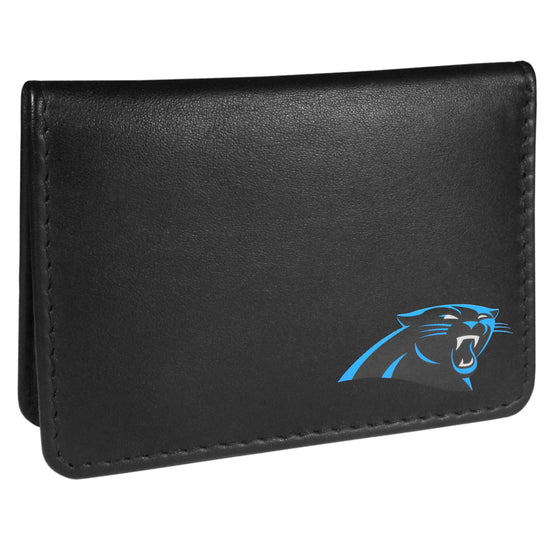 Discover the perfect blend of style and security with this unique mini wallet, designed to offer the functionality of a weekend wallet while incorporating the protection of a traditional bi-fold. Unlike typical weekend wallets which can stretch and risk losing your credit cards, this innovative design flips closed to ensure your cash and cards remain securely inside. Featuring a sleek black exterior, this classic wallet showcases a beautifully printed Carolina Panthers logo on the front corner, making it an ideal accessory for passionate fans. Enjoy the ultimate convenience and peace of mind with this stylish mini wallet.