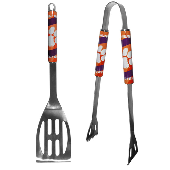 Elevate your game day experience with our stainless steel 2-piece BBQ set, the ultimate tailgater's companion. Perfectly designed for Clemson Tigers fans, this officially licensed sports memorabilia product showcases vibrant team graphics on every tool, proudly announcing your loyalty. This essential sports collectible includes a spatula and tongs, featuring deep ridges for optimal grip, making it ideal for grilling at any sporting event. Whether you're tailgating or hosting a backyard barbecue, this colorful BBQ set is a must-have addition to your sports gifts collection. Shop now at 757 Sports Collectibles, your go-to sports fan shop for all your memorabilia needs. Please allow 3-5 business days for handling before shipment.