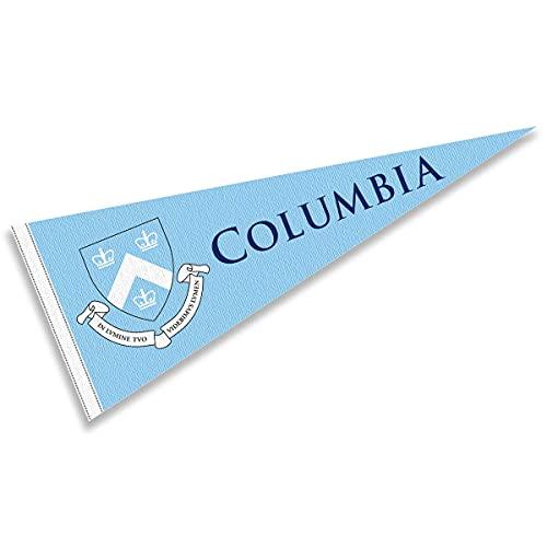 Details: Our Columbia Pennants are an easy way to show your college team allegiance in your sports room, game room, office, bedroom, or any room by displaying on any wall. These college pennants measure a full size 12x30 inches, are made of felt, and are single-sided screen printed with the school insignias and logos, as shown. Each Columbia University Pennant Full Size Felt is Officially Licensed by the selected team and Columbia University which insures current school insignias, wordmarks, and authentic college colors. The League pennants also include a pennant sleeve on the left side which can be used to insert a pennant stick, if desired.