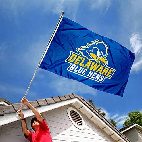 Details: This outdoor Flag, Banner or Pennant measures 3' x 5' in size, has Quadruple Stitched fly ends, is made of durable Polyester, and has two Metal Grommets for attaching to your flagpole, tailgating flag pole, or for hanging as a large banner. The Screen Printed UD Blue Hens logos are Officially Licensed and Team, College, or University Approved approved. The printed insignia are Viewable from Both Sides (Opposite Side is a Reverse Image). Poles, Brackets, and Accessories sold separately.