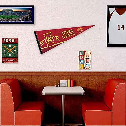 Details: Our Iowa State Cyclones Pennants are an easy way to show your college team allegiance in your sports room, game room, office, bedroom, or any room by displaying on any wall. These college pennants measure a full size 12x30 inches, are made of felt, and are single-sided screen printed with the school insignias and logos, as shown. Each Iowa State Cyclones Pennant Full Size Felt is Officially Licensed by the selected team and Iowa State University which insures current school insignias, wordmarks, and authentic college colors. The League pennants also include a pennant sleeve on the left side which can be used to insert a pennant stick, if desired.