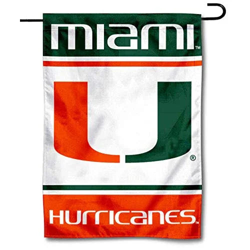 Details: Perfect for your garden or home entrance is our Flag, Banner or Pennant for your favorite League team. This double sided Garden Flag measures a large 13" x 18", has a Double Stitched border, a 1 inch top sleeve, and is made of 2 ply Polyester with sewn in liner, so the logos are Viewable and Readable Correctly on Both Sides. The Screen Printed Miami Canes logos are Officially Licensed and College, University, or Team Approved. Please Note: Garden Flag Stand, Mailbox Poles, and all Accessories are sold separately.