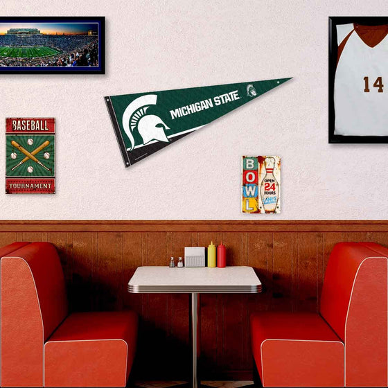 Details: This logo banner set is a great way to show your team allegiance in your sports room, game room, office, bedroom, fan cave, garage, or any room by displaying on any wall. These pennant flags measure a full size 12 in X 30 in, are made of Felt, and are single-sided Screen Printed with the insignias and logos, as shown. Each banner is Officially Licensed by the selected team which insures current insignias, wordmarks, and authentic colors. Also, a pack of 6 Wall Pads and 6 Tacks are included which enable you to display on any wall. This ready to hang kit provides the pennant with a drop shadow while the tacks attach your pennant to the 3/8 inch thick adhesive wall pads. Easy directions are to find the location on the your wall to display your pennant. Hold and press each adhesive pad for 30 seconds. Use included tacks to display your pennant by pressing the corners into each pad.