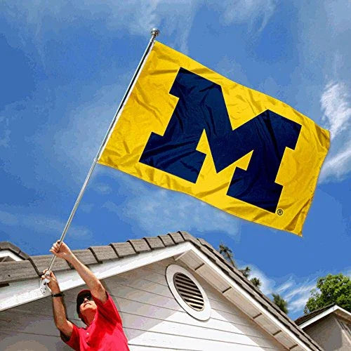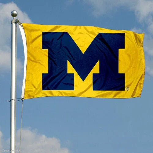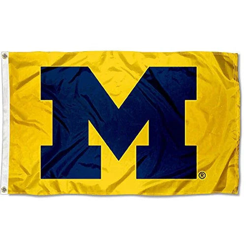 Details: Our Michigan Yellow Flag measures 3x5 feet in size, has quadruple-stitched fly ends, is made of durable polyester, and has two metal grommets for attaching to your flagpole. The screen printed UM logos are Officially Licensed and Approved by University and are viewable from both sides with the opposite side being a reverse image.