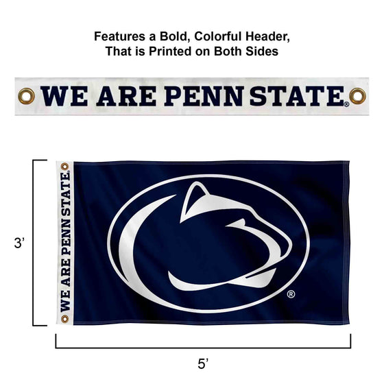 Details: This Premium Header Printed banner flag measures 3 ft x 5 ft in size, has Quadruple Stitched fly ends, additional sewn corner tabs for durability, is made of durable Polyester, and has two Metal Grommets for attaching to your flagpole. In addition, this quality flag features a 2-ply header which is printed with team nicknames and wordmarks on both sides. The Screen Printed coillege or university logos are Officially Licensed and Approved and are Viewable from Both Sides (Opposite Side is a Reverse Image).