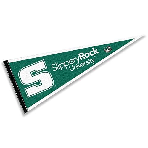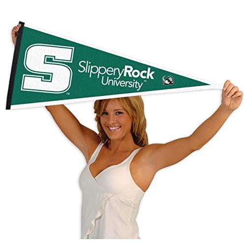 Details: Our Flag, Banner or Pennant is a great way to show your tean allegiance in your sports room, game room, office, bedroom, or any room by displaying as a wall banner. These Pennants measure 12" X 30", are made of Felt, and are single-sided Screen Printed with SRU The Rock insignias and logos. Each Flag, Banner or Pennant is Officially Licensed and Team, College, or University Approved approved which insures current insignias, wordmarks, and authentic colors. These pennants also include a sewn pennant stick sleeve on the left side which can be used to insert a pennant stick, if desired.