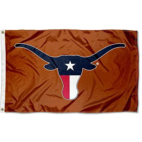 Details: Our Texas Longhorn Flag TX State Flag Colors measures 3x5 feet in size, has quadruple-stitched fly ends, is made of durable polyester, and has two metal grommets for attaching to your flagpole. The screen printed UT logos are Officially Licensed and Approved by University Texas and are viewable from both sides with the opposite side being a reverse image.