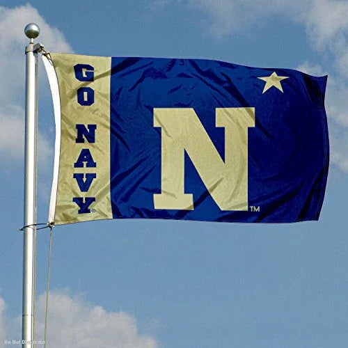Details: This Flag, Banner or Pennant measures 3' x 5' in size, has Quadruple Stitched fly ends, is made of durable Polyester, and has two Metal Grommets for attaching to your flagpole. The Screen Printed Navy Midshipmen logos are Officially Licensed and College, University, or Team Approved and are Viewable from Both Sides (Opposite Side is a Reverse Image).