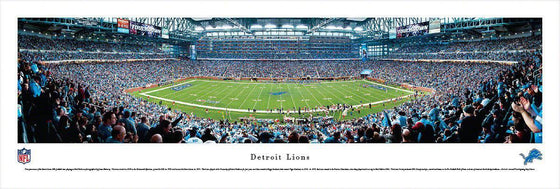 This panorama of the Detroit Lions NFL football team playing at Ford Field was photographed by James Blakeway. The team started in 1929 as the Portsmouth Spartans, joined the NFL in 1930 and became the Detroit Lions in 1934. The Lions played at the University of Detroit Stadium for four years and then moved to Briggs Stadium (later named Tiger Stadium) in 1938. In 1975, the Lions moved to the Pontiac Silverdome, where they played until moving to Ford Field in 2002. The Lions' history includes NFL Championships, several enshrinees in the Pro Football Hall of Fame and one of America's best holiday traditions – Detroit's annual Thanksgiving Day Classic.