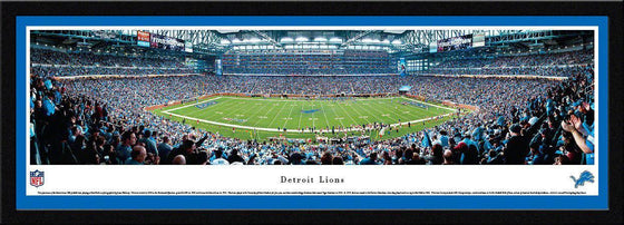 This panorama of the Detroit Lions NFL football team playing at Ford Field was photographed by James Blakeway. The team started in 1929 as the Portsmouth Spartans, joined the NFL in 1930 and became the Detroit Lions in 1934. The Lions played at the University of Detroit Stadium for four years and then moved to Briggs Stadium (later named Tiger Stadium) in 1938. In 1975, the Lions moved to the Pontiac Silverdome, where they played until moving to Ford Field in 2002. The Lions' history includes NFL Championships, several enshrinees in the Pro Football Hall of Fame and one of America's best holiday traditions – Detroit's annual Thanksgiving Day Classic.