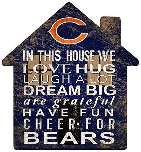 Details: Chicago Bears House shaped sign with positive family message and team logo. Decorative team sign. Great for any room. Show team pride. American made sign.