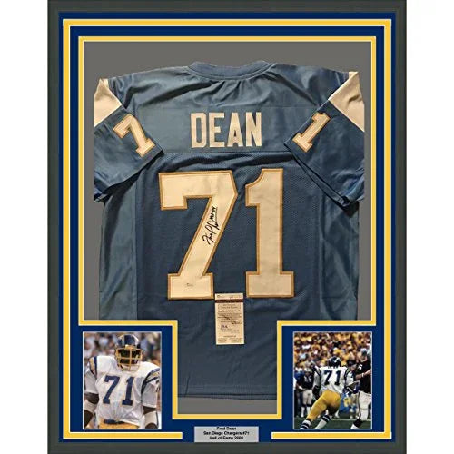 Framed Autographed/Signed Fred Dean"HOF 08" 33x42 San Diego Chargers Powder Blue Football Jersey JSA COA Framed Autographed/Signed Fred Dean"HOF 08" 33x42 San Diego Chargers Powder Blue Football Jersey JSA COA - 757 Sports Collectibles