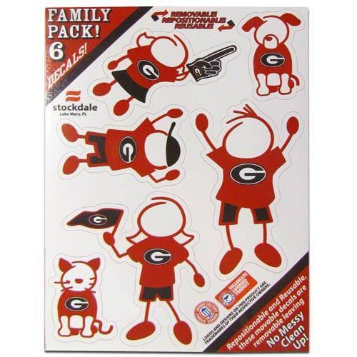 Show off your team pride with our Georgia Bulldogs family automotive decals. The set includes 6 individual family themed decals that each feature the team logo. The 5 x 7 inch decal set is made of outdoor rated, repositionable vinyl for durability and easy application. Officially licensed College product. 6 repositionable characters. Set of family characters with team logos. Super simple to apply, just peel and stick . Great way to show off your Georgia Bulldogs pride. Is made by Siskiyou Gifts.