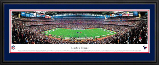 This panorama of the Houston Texans playing to their home crowd at Reliant Stadium was photographed by James Blakeway. Reliant Stadium opened for business in 2002, and the Texans made their regular season debut against the Dallas Cowboys. On that day, they unveiled a gameday atmosphere that would become a staple of Texans football games. The first NFL stadium with a retractable roof, Reliant Stadium has earned a reputation as one of the premier big-event venues in American sports, hosting Big 12 Championship games, NCAA Men's Basketball tournaments, the annual Texas Bowl and Super Bowl XXXVIII.