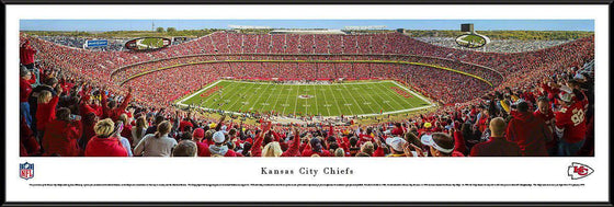 This panorama of the Kansas City Chiefs, taken by James Blakeway, captures fan excitement at Arrowhead Stadium, as the Chiefs score a touchdown on their way to a victory over the Cleveland Browns. The Chiefs played their inaugural game at Arrowhead Stadium on August 12, 1972 and today Arrowhead has stood the test of time as one of the nation’s top venues for fans to experience the excitement of professional football. Founded in Dallas in 1960, the club relocated to Kansas City, Missouri, in 1963 and was renamed the Kansas City Chiefs. In 1969, the Chiefs became the only club in AFL history to win three AFL Championships. The Chiefs went on to victory in Super Bowl IV in January 1970.