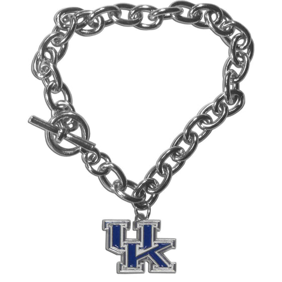 Show off your team spirit with our Kentucky Wildcats Single Charm Bracelet, an essential addition to any sports fan's collection. This officially licensed college product features a stylish 7.5-inch large link chain adorned with a polished Kentucky Wildcats charm. Designed for convenience, the easy toggle clasp makes it simple to wear and remove. With vibrant enameled team colors, this bracelet not only represents your love for the Wildcats but also makes a perfect gift for sports enthusiasts and collectors alike. Discover more exciting sports collectibles at 757 Sports Collectibles, your go-to shop for sports gifts and memorabilia.