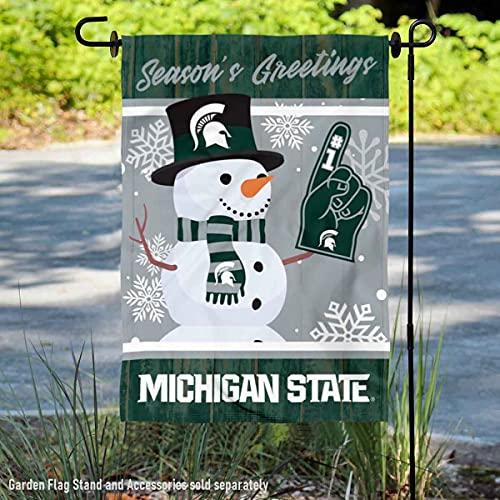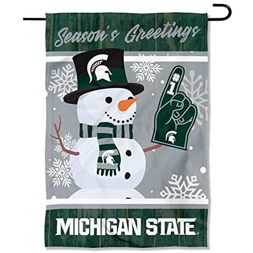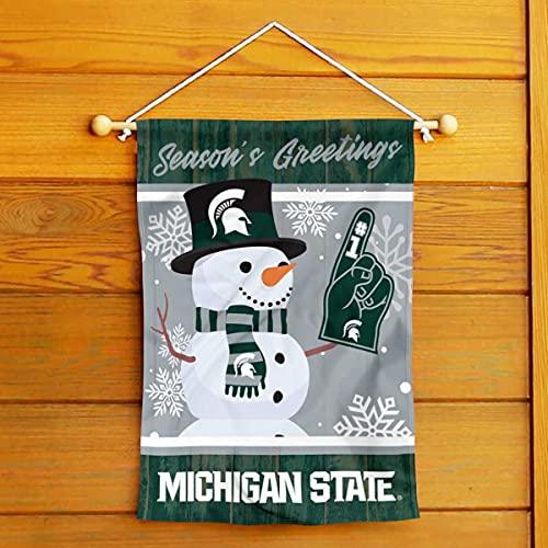 Details: Ideal for your garden or home entrance is our Snow Winter Christmas Season Garden Flag Banner. This double sided League Garden Flag measures a large 12.5" x 18", has a Double Stitched border, a 1 inch top sleeve, and is made of 2 ply Polyester so the logos are Viewable and Readable Correctly on Both Sides. The Screen Printed Spartans logos are Officially Licensed and Approved by the League and Team, College, or University Approved. (Flag Only, Garden Stand and Accessories Sold Separately)