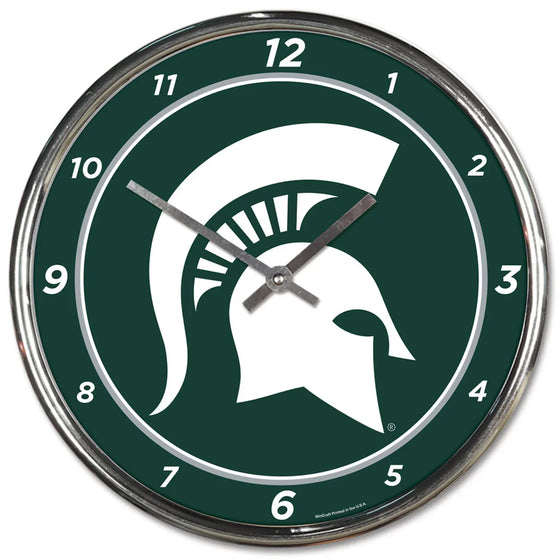 Michigan State Spartans Round Chrome Wall Clock (CDG) - 757 Sports Collectibles Michigan State Spartans Round Chrome Wall Clock (CDG) - 757 Sports Collectibles