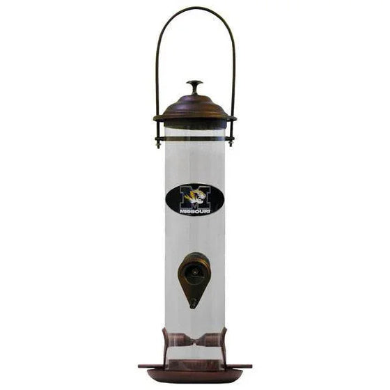 Introducing the Missouri Tigers Thistle Bird Feeder - an essential addition to any sports fan's collection of sports memorabilia and collectibles. Standing at an impressive 18 inches tall, this bird feeder features a generous 5-inch diameter catcher tray that holds up to 24 ounces of thistle seed, perfect for attracting beautiful birds to your yard.